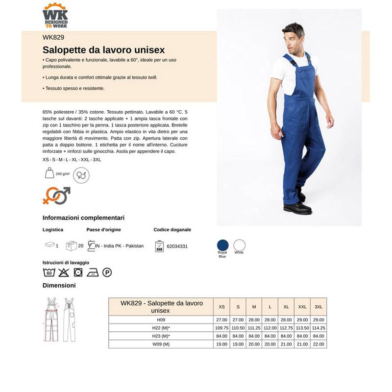 wk829 | salopette da lavoro unisex da personalizzare online su Gecoshopping a prezzi scontati